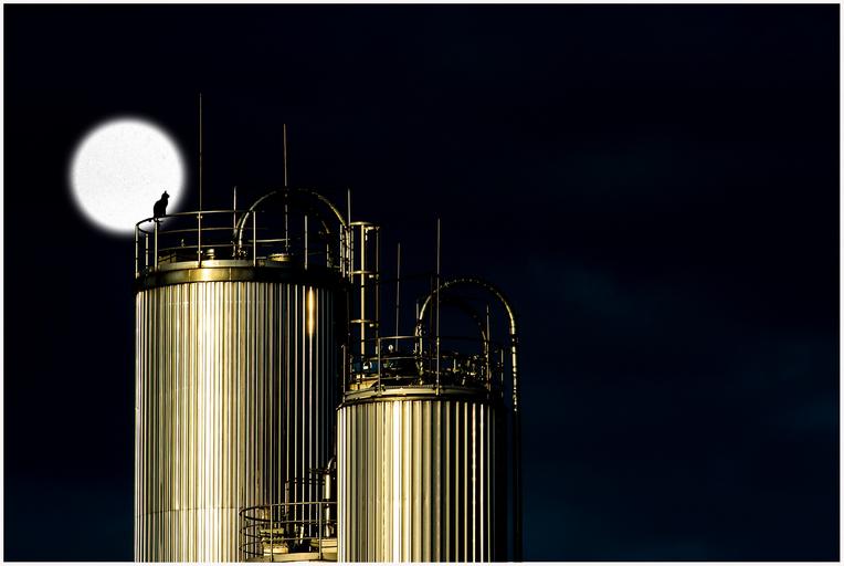 Keywords: industry tank night moon cat silhouette moonlight