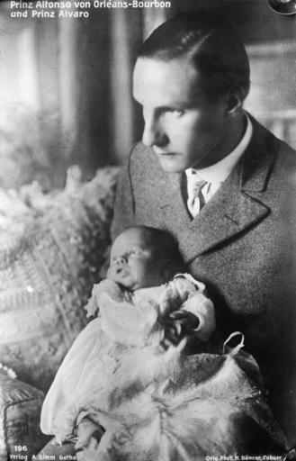 | Keywords: Infante Alfonso.jpg en Infante Alfonso Duke of Galliera with his first son Alvaro in 1910 ggbain 07272 Library of Congress http //loc gov/pictures/collection/ggbain/item/ggb2004007272/ sid 19202f0bb998280fb700348cedc7d5bd H Dänzer Coburg Verlag A Gimm Gotha Bain News Service 1910 No known restrictions on publication PD-Old Infante Alfonso Duke of Galliera Verlag A Gimm Gotha |