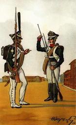| Keywords: Infantrymen (Preobrazhensky, Sevsky, 1812) by N Zaretsky 1911.jpg Artwork Creator Nikolai Zaretsky A Grenadier of the w Preobrazhensky Regiment Life Guards Preobrazhensky Regiment summer dress; on the left and a Musketeer of Sevsky Infantry Regiment winter dress П еоб аженский лейб-гва дии полк П еоб аженского лейб-гва дии полка ru летняя фо ма; слева и мушкетё From the series The Russian Army in 1812 Из се ии «Русская а мия в 1812 году» 1911 watercolour india ink object history The reproduction of the aquarelle was published in 1912 by the Cartographical Enterprise of Aleksey Ilyin Saint Petersburg as a part of the postcard set The Russian Army in 1812 Реп одукция аква ели была опубликована в 1912 году Ка тог афическим заведением w Ильин Алексей Афиногенович А А Ильина ru г Санкт-Пете бу г в составе набо а почтовых отк ыток «Русская а мия в 1812 году» exhibition history credit line accession number cite book Военный мунди Русская а мия в 1812 году LangSwitch set of postcards набо отк ыток осква Госуда ственный исто ический музей; Да инчи ru LangSwitch the reprint of postcards issued in 1912 еп инт отк ыток выпущенных в 1912 году See below PD-RusEmpire Russian Army in 1812 by Nikolai Zaretsky 34th Infantry Regiment of Sevsk Preobrazhensky Guard Regiment Reproductions of artworks uploaded by Dmitry Ivanov Zaretsky |