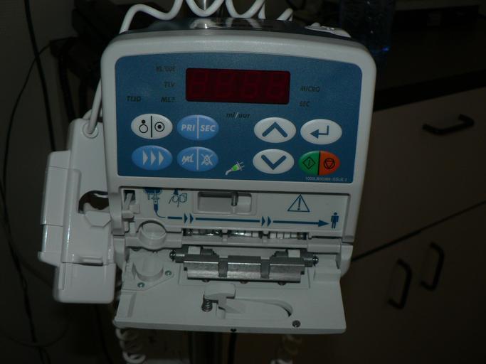 | Keywords: Infuuspomp.jpg en infusion pump Own Harmid <pre> <pre> 2 x T 63 mA 20 x 5mm 250 V </pre> <pre> ALARIS Medical UK Ltd Basingstoke RG22 4BS UK </pre> <pre> GB British Patent No 2083560 2083561 2083563 IE Patent No D13001 D13003 D13007 </pre> <pre> Alarmsignalen en waarschuwingen Attn 2 minuten pauze-alarm HOOG PRES Occlusie onder de pomp LCHT OCCL Occlusie boven de pomp/ lucht in de lijn DEUR Deur open DRUP SENS Aansluitfout flowsensor / Onregelmatige infusie waargenomen END TIV limiet bereikt LAA BAT Bijna lege batterij ERR Interne fout </pre> </pre> Intravenous therapy |