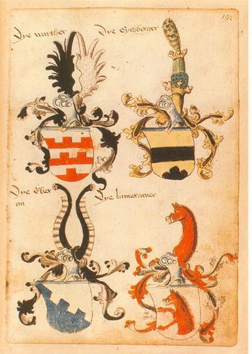| Keywords: Ingeram Codex 192.jpg Ingeram-Codex der ehemaligen Bibliothek Cotta <br/> Dye warther <br/> Dye Eychberger <br/> Dye Eber/an <br/> Dye tamerawer Die Wappenbücher Herzog Albrechts VI von Österreich Ingeram-Codex d ehem Bibliothek Cotta; hrsg v Charlotte Becher u Ortwin Gamber; Wien; Köln; Graz; 1986 Jahrbuch der Heraldisch-Genealogischen Gesellschaft Adler; Folge 3 Bd 12 Jg 1984/85; ISBN 3-205-05002-9 1459 Hans Ingeram and a so called Exempla-master Reproduction of a painting that is in the public domain because of its age PD-old-100 Ingeram Codex-Einhorn |