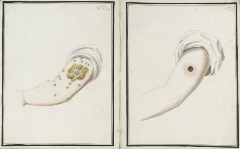 Keywords: Inoculation day 16.png en The progress of smallpox L and cowpox R inoculations sixteen days after administration From en Wellcome Foundation http //images wellcome ac uk/indexplus/result html sform wellcome-images _IXACTION_ query 24 3Dtoday _IXFIRST_ 1 3Did_ref L0039173 _IXSPFX_ templates/t _IXFPFX_ templates/t _IXMAXHITS_ 1 _IXSESSION_ 50yYEj41gVI George Kirtland 1802 PD-old-100 Vaccinations Illustrations of smallpox Cowpox History of vaccination |