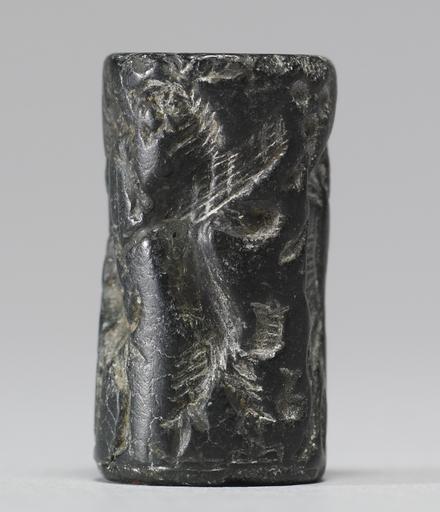 | Keywords: Inscriptions - Walters 42582 - Side D.jpg The depicted scene includes a lion and a griffin both on hind legs attacking a horned quadruped The horned quadruped's body faces the lion but its head is turned to face the griffin Behind the griffin is another figure the top of which is difficult to read but the legs on which it stands are that of a bull bull-man A cuneiform inscription in two registers borders the scene date Old Babylonian black stone cm 2 5 1 3 h x diam accession number 42 582 12556 Sadie Jones Mrs Henry Walters New York date and mode of acquisition unknown Sale Joseph Brummer New York 1941 Walters Art Museum 1941 by purchase Museum purchase 1941 Inscription place of origin Egypt Walters Art Museum license Cylinder seals in the Walters Art Museum Art of the ancient Near East Walters cylinder seal 42582 Walters Art Museum cylinder seals with cuneiform Media contributed by the Walters Art Museum needs category review |