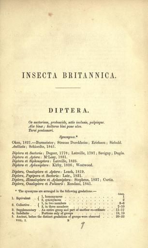 | Keywords: InsectaBritannicaVolume1page1.jpg en Insecta Britannica Volume1 page 1 SYNONYMA The Synonyma is very technical but it is partially given here to illustrate the clarity and logical nature of Haliday's procedure as well as the huge knowledge to which it was applied None of the books listed which are in several languages are easy reading The synonyms are arranged in the following gradations - 1 homonymous Line1 1 Equivalent 2 synonymousLine 2 1 in two membersLine 3-6 2 Collective 2 in three members Line7-10 3 Supplementary An entire group and part of another co-ordinate Line11-17 4 Indefinite Portions only of groups Line18 19 5 Ancient before the distinct gradations of groups were observed Line20-22 Insect Britannica - This that and the other thing - Synonyms for the Order Diptera Line 1 Oken 1821 --Burmeister; Strauss Durkheim; Erichson; Siebold Haliday is explaining here that his use of the name Diptera is precisely equivalent to that of the authors listed Line 2 Antliata Schioedte 1841 Here Haliday is stating that his use of the name Diptera is for an identical systematic group which Shiodte named Antliata Line 3 Diptera et Suctoria Degeer 1778; Latreille 1797; Savigny; Dugès Here Haliday is saying that his systematic group named Diptera includes the Suctoria or fleas a group separated from the Diptera under the name Suctoria by Degeer Latreille Savigny and Dugès Line 4 Diptera et Aptera M'Leay 1821 McLeay unlike Haliday considered the fleas a separate order for which he used Linnaeus name Aptera Line 5 Diptera et Siphonaptera Latreille 1825 Modern authors unlike Haliday consider the fleas a separate order from the Diptera using Latreille's name Siphonaptera for them Line 6 Diptera et Aphaniptera Kirby 1826; Westwood Westwood called the fleas Aphaniptera as do some modern authors From 7-10 Three order level groups not two are included in Haliday's single order Diptera Line 7 Diptera Omaloptera et Aptera Leach 1819 A third group is introduced- the Omaloptera These perplexing insects in which the young are born in a stage like the pupa are really Diptera as Haliday thought According to Leach Omaloptera Aptera and Diptera are separate orders Line 8 Diptera Pupipara et Suctoria Latr 1821 Latreille called the insects Leach had called Omaloptera Pupipara He called the fleas Suctoria Latreille thought all three were separate orders Line 9 Diptera Homaloptera et Aphaniptera Stephens 1821 Curtis Here called Homaloptera Diptera and Aphaniptera are treated as three separate orders Line 10 Diptera Omaloptera et Pulicarii Rondani 1841 In this work Rondani reverted to the spelling Omaloptera and called the fleas Pulicarii In the next group of synynoyms 11-17 Haliday merges an entire group and part of another co-ordinate From here on the situation becomes complicated and more detail than Haliday gives is necessary for complete understanding Line 11 Diptera et Aptera p Linnaeus 1753; Geoffroy; Müller; Olivier p means part ie only part of the Aptera are included Line 12 continuation of 11 Cuvier; Dumeril; Meigen; Fallen; Zetterstedt The entire group here is Diptera only the Aphaniptera or fleas are included here by Haliday although this is not stated Line 13 Halterata et Pedestria p Scopoli 17 The Halterata are a whole group within the Diptera Only part of the Pedestria which are partially also Diptera Line 14 Muscoides et Oniscoides p Laicharting 1781 These names are seldom found the work is obscure Line 15 Halteriptera et Rophoteira p Claireville 1798 Again the names are obscure and the purpose of their inclusion is to eliminate them Line 16 Diptera et Antennidia p Rafinesque 1815 Rafinesque considered the Antennidia a separate and equivalent group to the Diptera Here Haliday is merging the two Line 17 Aptera et Diptera p Lamarck Lamarck's Diptera included insect groups other than Diptera Line 18 Angioptera p Linnaeus 1735 Haliday was uncertain as to exactly what Linnaeus writing in 1735 had meant by Angioptera hence the term Indefinite Linnaeus initially divided the insects into four orders Coleoptera Angioptera Hemiptera and Aptera Diptera were only part of the order Angioptera Line 19 Antliata p et Ryngota p Fabricius 1775; Illiger etc Haliday is rendering these groups redundant Ancient synonyms And for completeness Haliday includes Ancient before the distinct gradations of groups were observed These names go back to antiquity Aristotle lived from 384-322 BC Pliny from 23-79 AD Martin Lister was a much later figure 1775-1858 Line 20 Diptera et Aptera p Aristoteles Line 21 Bipennia et Impennia p Plinius Line 22 Anelytra Bipennia c Lister http //www biodiversitylibrary org Alexander Henry Haliday 1851 PD-old-100 Insecta Britannica Diptera Haliday |