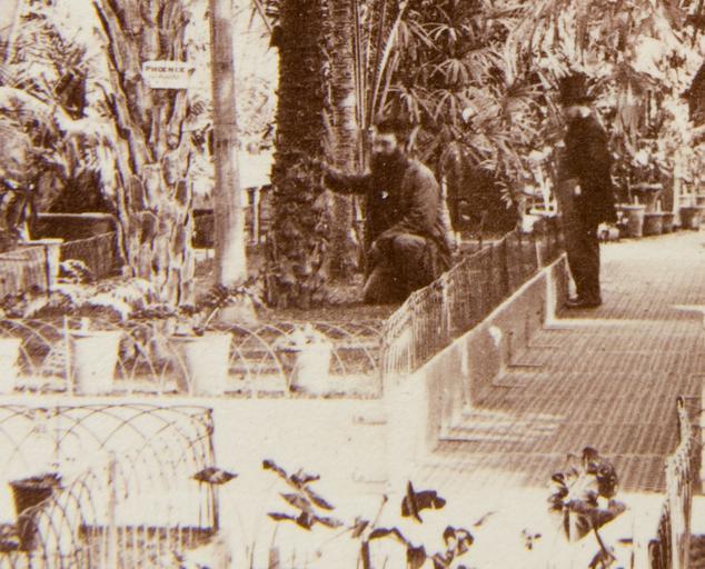 | Keywords: kew kew gardens kewgardens palm house palmhouse staff palm palms phoenix phoenix reclinata phoenixreclinata stereoview 3d 1860s public domain publicdomain Who says you can't still get quality images for good prices on eBay? I picked this up from a French seller for a couple of pounds. Everything about it is wonderful - nice and early, an unusual view, two staff members, and identifiable label (Phoenix reclinata) superb condition, and an excellent 3D effect - what more could you ask for? See the other images for details and an animated 3D version. Who says you can't still get quality images for good prices on eBay? I picked this up from a French seller for a couple of pounds. Everything about it is wonderful - nice and early, an unusual view, two staff members, and identifiable label (Phoenix reclinata) superb condition, and an excellent 3D effect - what more could you ask for? See the other images for details and an animated 3D version. |