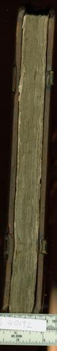 | Keywords: Institutiones - Edge (IB40192).jpg Style Panel design Single tools design Diaper; Caption Edge; Colour Brown; Edge Unspecified exhibition history Decorative Technique Tooled in blind; Cover Material Calf Cushioned wooden boards sewn on 4 leather sewing supports Remains of two clasps catching onto lower board Extensive ink ms notes Vellum paste downs not pasted down lower one has a hole in it BMC VIII 146 H 9529 GW 7631 Belonged to Master John Willoughby object history Text 1493 / 1494; Paris; Unspecified object type Cc-zero place of creation Binding England place of discovery Graham Pollard The names of some fifteenth century English binders in The Library Volume s5-XXV Number 3 1970 See H M Nixon Five Centuries of English Bookbinding London 1978 n 3 See J B Oldham English Blind-Stamped Bindings Cambridge 1952 pls XVI XVIII British Library image http //www bl uk/catalogues/bookbindings/LargeImage aspx RecordId 020-000014715 ImageId ImageId 54064 Copyright BL Institutiones Uploaded with GWToolset Institutiones - Edge IB40192 http //www webarchive org uk/bldatasets/bindings/ib40192edge jpg Bookbinding 15th-century bookbinding British Library Bookbindings Scanned with HP ScanJet 8200 |