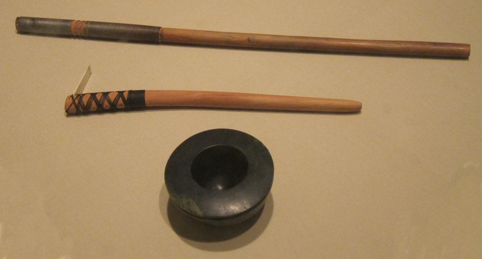 Keywords: Instruments for traditional Pacific Island tattoos.jpg en Instruments for traditional Pacific Island tattoos hāhau tapping stick made of ulei wood moli tattoo tool made of wood and bone and apu pa okina u ink bowl made of jade own Haa900 photo 2012 Cc-zero Tattoos in Polynesia Tattoo machines |