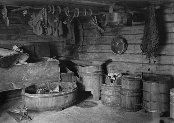 Keywords: Interiör av matbod - Nordiska Museet - NMA.0037080.jpg Artwork Creator Nils Keyland sv Interiör av matbod På golvet till vänster står en laggad tina innehållande kött och fläsk Ett torkat köttstycke och korvar hänga på en stång i taket Närmast höger vid väggen en dricktunna med svagdricka och tapp samt en spisölhålk med lyftlock Till vänster en råttfälla <br /> Annat Utsikt över Sverige SE Värmland Utsikt över Sverige SE Värmland Jösse hd Mangskog Interiör av matbod På golvet till vänster står en laggad tina innehållande kött och fläsk Ett torkat köttstycke och korvar hänga på en stång i taket Närmast höger vid väggen en dricktunna med svagdricka och tapp samt en spisölhålk med lyftlock Till vänster en råttfälla <br /> Annat Utsikt över Sverige SE Värmland Utsikt över Sverige SE Värmland Jösse hd Mangskog<br /> Ämnesord Förvaring; Husgeråd; Interiör; Livsmedel; Mat photograph 18x13 cm Liggande 4651x3307 pixlar Liggande Institution Nordiska museet object history credit line accession number NMA 0037080 Nordiska museet cooperation project PD-Old Images from Nordiska museet NMA 0037080 Images from Nordiska museet/check NMA 0037080 Kitchen utensils Food storage Food products of Sweden Jösse härad Nils Keyland Barrels Wooden walls Wooden household objects 1919 in Sweden Mousetraps |