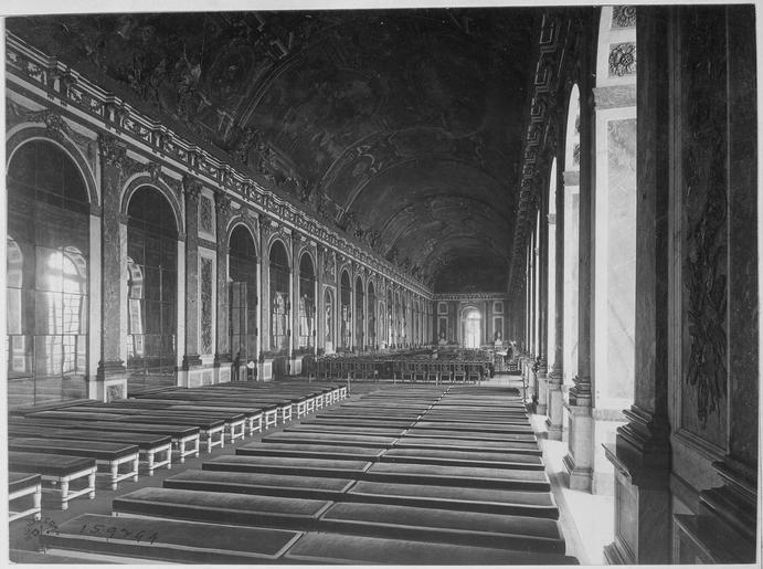 Keywords: Interior of the Galerie des Glaces showing the arrangement of tables for the signing of Peace Terms, Versailles... - NARA - 531149.tif Local identifier 111-SC-159294 Department of Defense Department of the Army Office of the Chief Signal Officer 09/18/1947 - 02/28/1964 Still Picture Records Section Special Media Archives Services Division NWCS-S National Archives at College Park 8601 Adelphi Road College Park MD 20740-6001 1919-06-27 Record group Record Group 111 Records of the Office of the Chief Signal Officer 1860 - 1985 Record group ARC 440 Signal Corps Photographs of American Military Activity compiled 1754 - 1954 Series ARC 530707 Variant control numbers NAIL Control Number NWDNS-111-SC-159294 General notes Use War and Conflict Number 723 when ordering a reproduction or requesting information about this image Scope and content File unit File unit ARC yes NARA-cooperation PD-USGov Treaty of Versailles Hall of Mirrors Palace of Versailles |