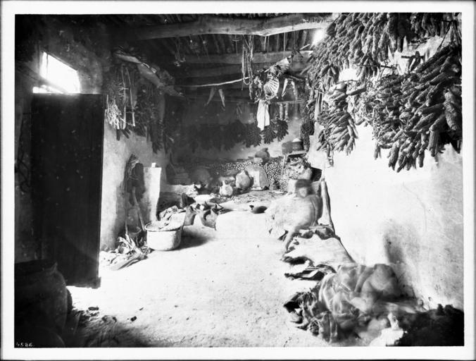 Keywords: Interior of a Hopi Indian house at Oraibi, Arizona, ca.1900 (CHS-4586).jpg en <br> Interior of a Hopi Indian house at Oraibi Arizona ca 1900 Photograph of the interior of a Hopi Indian house at Oraibi Arizona ca 1900 Dried maize and other food plants hang from the ceiling and walls The rough hewn rafters are visible above Pelts containers blankets and foodstuffs can be seen on the dirt floor near the walls Sunlight streams in the open door at left Call number CHS-4586 Legacy record ID chs-m16917; USC-1-1-1-13519 Photographer James George Wharton Filename CHS-4586 Coverage date circa 1900 Part of collection California Historical Society Collection 1860-1960 Type images Geographic subject city or populated place Oraibi Repository name USC Libraries Special Collections Accession number 4586 Microfiche number 1-168- Archival file chs_Volume96/CHS-4586 tiff Part of subcollection Title Insurance and Trust and C C Pierce Photography Collection 1860-1960 Repository address Doheny Memorial Library Los Angeles CA 90089-0189 Geographic subject country USA Format aacr2 2 photographs glass photonegative photoprint b w ; 17 x 22 cm Rights Digitally reproduced by the USC Digital Library; From the California Historical Society Collection at the University of Southern California Subject adlf tribal areas Project USC Repository email specol usc edu Identifying number plate no James-41 Contributing entity California Historical Society Date created circa 1900 Publisher of the digital version University of Southern California Libraries Format aat photographic prints; photographs Geographic subject state Arizona Subject file heading Indians -- Hopi Format glass plate negatives Access conditions Send requests to address or e-mail given Phone 213 821-2366; fax 213 740-2343 Geographic subject county Navajo Subject lcsh Indians of North America; Hopi Indians; Dwellings circa 1900 date created James George Wharton http //digitallibrary usc edu/cdm/ref/collection/p15799coll65/id/16839 PD-old-70-1923 Images from USC Digital Library uploaded by Fæ California Historical Society Collection 1860-1960 Glass plate negatives Hopi Photographs by George Wharton James |