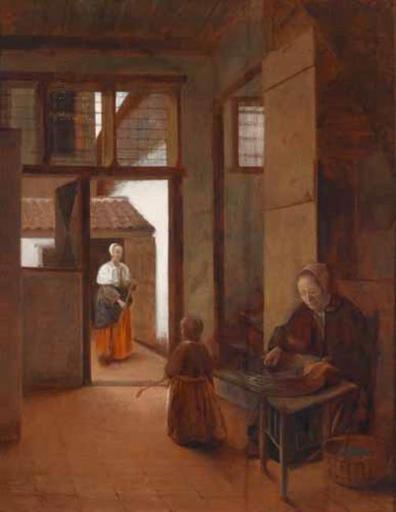 Keywords: Interior with a Woman and Child and through doorway a Maid sweeping.jpg Artwork creator Pieter de Hooch Title Interior with a woman and a child; outside a maid is sweeping the yard Interieur met een vrouw en een kind; op de binnenplaats veegt een dienstbode de stoep 1655-1656 230130 ca 1655 “1656 oil canvas cm 59 7 47 unknown Private collection P C Sutton Pieter de Hooch Oxford 1980 cat no 18a ; C Hofstede de Groot Beschreibendes und Kritisches Verzeichnis der Werke der Hervorragendsten Hollandischen Maler des XVII Jahrhunderts vol I Paris 1907 cat no 300 object history after cleaning in 2010 the signature appeared; dated by F G Meijer RKD notes credit line http //www artnet com/artists/pieter-de-hooch/interieur-mit-einer-frau-und-einem-kind-sowie-hSoMQZS29h5tjRqan8ZOQw2 Other versions PD-old-100 Genre paintings by Pieter de Hooch 1655 paintings |