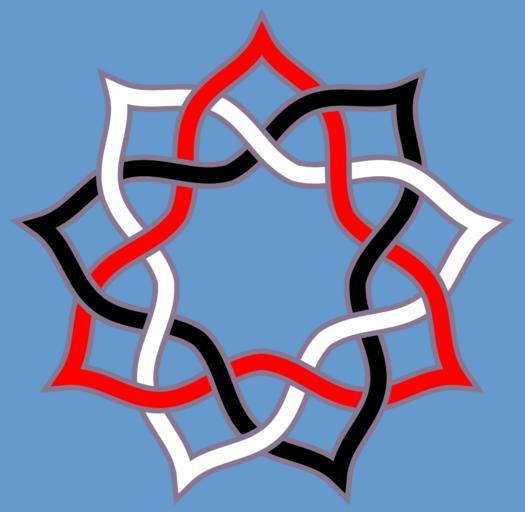 | Keywords: Interlaced-Triangles quasi-Arabesque Brunnian-link.svg Three interlaced triangles with curvy sides forming a quasi-Arabesque pattern which is also a Brunnian link of knot theory with 18 crossings For an alternate less pointy version of the same basic design see File Interlaced-Triangles Brunnian-link alternate svg For a similar visual treatment of a simpler Brunnian link with only 12 crossings see File Brunnian-link-12crossings-nonBorromean-quasi-Arabesque svg Topologically equivalent to Image Three-triang-18crossings-Brunnian png ; is also a revised version of the star of the muses symbol Created from scratch by AnonMoos; converted from a version of the following PostScript source code <pre> 300 396 translate 3 dup scale/A 0 13 5 moveto 18 5 14 8875 35 7 125 45 3 375 curveto 55 -0 375 71 5 -8 1375 90 -6 75 curveto 108 5 -5 3625 125 4 875 135 10 125 curveto 145 15 375 161 5 25 6125 180 27 curveto 198 5 25 6125 215 15 375 225 10 125 curveto 235 4 875 251 5 -5 3625 270 -6 75 curveto 288 5 -8 1375 305 -0 375 315 3 375 curveto 325 7 125 341 5 14 8875 360 13 5 curveto stroke def/B 0 1 8 gsave 0 481125224 5 scale -180 -113 5 translate A grestore 40 rotate for def 75 setgray 15 setlinewidth B 0 setgray 9 setlinewidth B showpage EOF</pre> 2008 AnonMoos <gallery>File Interlaced-Triangles Brunnian-link alternate svg File Brunnian-link-12crossings-nonBorromean-quasi-Arabesque svg Image Three-triang-18crossings-Brunnian png</gallery> 3 component links Decorative knots Enneagram Brunnian links Goddess movement - Thealogy symbols |