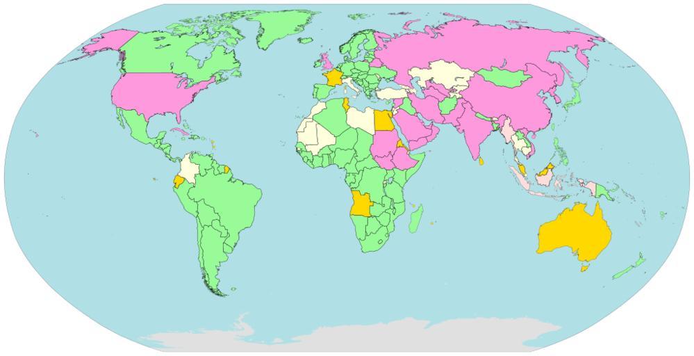 | Keywords: Internet Censorship and Surveillance World Map.svg en A map showing the level of Internet censorship and surveillance by country throughout the world Based on Wikipedia Internet censorship and surveillance by country fr Une carte illustrant le niveau de censure d'internet par pays à travers le monde Basé sur Wikipedia Internet censorship and surveillance by country 26 September 2011 updated 25 June 2014 own based on the article Internet censorship and surveillance by country as well as the classifications from Reporters Without Borders the OpenNet Initiative the Freedom on the Net reports from Freedom House and the Country Reports on Human Rights Practices of the U S Department of State<br/> ValidSVG handSVG BlankMap-World6 svg Jeffrey Ogden W163 This map is an update of the older somewhat out-of-date map File Internet blackholes svg<br>250px Legends New longer legend Internet censorship and surveillance by country<ref name ONISS-Nov2011>OpenNet Initiative http //opennet net/research/data Summarized global Internet filtering data spreadsheet 29 October 2012 and http //opennet net/research/profiles Country Profiles the OpenNet Initiative is a collaborative partnership of the Citizen Lab at the Munk School of Global Affairs University of Toronto; the Berkman Center for Internet Society at Harvard University; and the SecDev Group Ottawa</ref><ref name RWBEnemies2014>http //12mars rsf org/2014-en/ slide2 Internet Enemies Enemies of the Internet 2014 Entities at the heart of censorship and surveillance Reporters Without Borders Paris 11 March 2014 Retrieved 24 June 2014 </ref><ref name RWBEnemies>http //march12 rsf org/i/Report_EnemiesoftheInternet_2012 pdf Internet Enemies Reporters Without Borders Paris 12 March 2012</ref><ref name ONIChildPornLegal>Due to legal concerns the OpenNet Initiative does not check for filtering of child pornography and because their classifications focus on technical filtering they do not include other types of censorship </ref> F9D Pervasive censorship and/or surveillance FDD Substantial censorship and/or surveillance FFD Selective censorship and/or surveillance FFD800 Changing situation 98FB98 Little or no censorship and/or surveillance e0e0e0 Not classified / No data New short legend Internet censorship and surveillance by country<ref name ONISS-Nov2011>OpenNet Initiative http //opennet net/research/data Summarized global Internet filtering data spreadsheet 29 October 2012 and http //opennet net/research/profiles Country Profiles the OpenNet Initiative is a collaborative partnership of the Citizen Lab at the Munk School of Global Affairs University of Toronto; the Berkman Center for Internet Society at Harvard University; and the SecDev Group Ottawa</ref><ref name RWBEnemies2014>http //12mars rsf org/2014-en/ slide2 Internet Enemies Enemies of the Internet 2014 Entities at the heart of censorship and surveillance Reporters Without Borders Paris 11 March 2014 Retrieved 24 June 2014 </ref><ref name RWBEnemies>http //march12 rsf org/i/Report_EnemiesoftheInternet_2012 pdf Internet Enemies Reporters Without Borders Paris 12 March 2012</ref><ref name ONIChildPornLegal>Due to legal concerns the OpenNet Initiative does not check for filtering of child pornography and because their classifications focus on technical filtering they do not include other types of censorship </ref> F9D Pervasive FDD Substantial FFD Selective FFD800 Changing situation 98FB98 Little or no e0e0e0 Not classified / No data Original legend now somewhat out-of-date Internet censorship and surveillance by country<ref name ONISS-Nov2011>OpenNet Initiative http //opennet net/research/data Summarized global Internet filtering data spreadsheet 29 October 2012 and http //opennet net/research/profiles Country Profiles the OpenNet Initiative is a collaborative partnership of the Citizen Lab at the Munk School of Global Affairs University of Toronto; the Berkman Center for Internet Society at Harvard University; and the SecDev Group Ottawa</ref><ref name RWBEnemies2014>http //12mars rsf org/2014-en/ slide2 Internet Enemies Enemies of the Internet 2014 Entities at the heart of censorship and surveillance Reporters Without Borders Paris 11 March 2014 Retrieved 24 June 2014 </ref><ref name RWBEnemies>http //march12 rsf org/i/Report_EnemiesoftheInternet_2012 pdf Internet Enemies Reporters Without Borders Paris 12 March 2012</ref><ref name ONIChildPornLegal>Due to legal concerns the OpenNet Initiative does not check for filtering of child pornography and because their classifications focus on technical filtering they do not include other types of censorship </ref> F9D Pervasive censorship FDD Substantial censorship FFD Selective censorship FFD800 Changing situation 98FB98 Little or no censorship e0e0e0 Not classified / No data References Reflist cc-zero Help needed This map summarizes the classifications given in the https //en wikipedia org/wiki/Internet_censorship_and_surveillance_by_country Internet censorship and surveillance article Some of the main sources summarized in that article are no longer being updated A https //en wikipedia org/wiki/Talk Internet_censorship_and_surveillance_by_country Main_sources_for_this_article_going_away 2C_what_should_be_done 3F discussion on the article's talk page has been started to develop a plan for how to deal with this on into the future Please join the discussion to help maintain the quality of the article Uploaded with UploadWizard Internet censorship 2012 maps SVG maps of the world Distributional maps of the world Language-neutral maps |