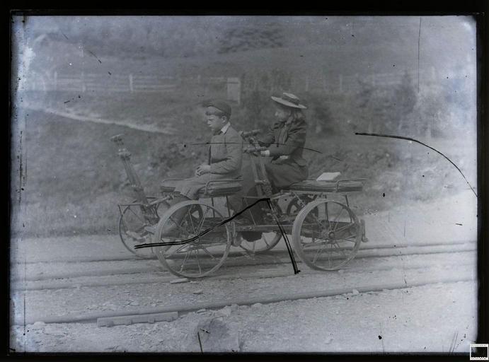 Keywords: carriage track gallery2flickr public domain publicdomain drawing I wonderful old contraption which is hand powered by way of the handles that stick up in front of the passengers (I guess you push and pull them) and which runs on train-like tracks. My suspicion is that this would have been an attraction at a seaside resort. Not in great condition, but I could make the scan a lot better and patch it up a bit! One of many images that I am slowly importing from my whatsthatpicture.com website. See the original at www.whatsthatpicture.com/index.php?q=gallery&g2_itemI... I wonderful old contraption which is hand powered by way of the handles that stick up in front of the passengers (I guess you push and pull them) and which runs on train-like tracks. My suspicion is that this would have been an attraction at a seaside resort. Not in great condition, but I could make the scan a lot better and patch it up a bit! One of many images that I am slowly importing from my whatsthatpicture.com website. See the original at www.whatsthatpicture.com/index.php?q=gallery&g2_itemI... |