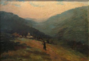 Keywords: Ion Marinescu Valsan - Spre biserica.jpg en Ion Marinescu Vâlsan - Spre biserică ulei pe pânză 65x95 cm semnat datat 1900 şi localizat Tismana dreapta jos http //www artpogany ro Creator Ion Marinescu Vâlsan 1900 PD-old-auto 1935 Ion Marinescu Vâlsan |