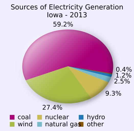 Keywords: Iowa Electricity Generation Sources Pie Chart.svg en Pie chart showing sources of electricity generated in Iowa 2014-07-16 13 17 06 own Aflafla1 ValidSVG Created with Python cc-zero Uploaded with UploadWizard SVG pie charts Energy in Iowa Charts of Electricity Generation Sources - U S State |
