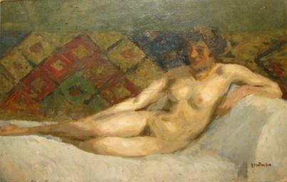 Keywords: Ipolit Strambu - Nud pe divan.jpg en Ipolit Strâmbu - Nud pe divan ulei pe carton semnat dreapta jos 36 5x55 cm http //www goldart ro/now html cPath 22 Creator Ipolit Strâmbu PD-old-auto 1934 Paintings of nude females by Ipolit Strâmbu