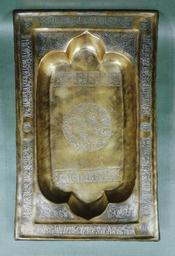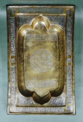 Keywords: Iranian - Tray from a Small Serving Table - Walters 54530.jpg This small tray is decorated with arabesques and with Arabic inscriptions that bestow good wishes- including good fortune blessing wealth joy and happiness- on its owner late 12th-early 13th century Medieval brass silver and copper inlay cm 4 35 5 22 5 accession number 54 530 21788 Dikran Kelekian Paris Henry Walters city Baltimore Walters Art Museum Henry Walters Acquired by Henry Walters 1930 Translation Glory prosperity wealth happiness God's support entirety well-being Muhammad's intercession perpetuity sufficiency honor tranquility gratitude mastery victory victoriousness superiority elevation mercy ease health favor potency power God's sympathy safety charity long life and perpetual commendation to its owner Art of Persia Ithaca College Museum of Art Ithaca 1966-1967 The Arts of Islam Hayward Gallery London 1976 Islamic Insights Katonah Gallery Katonah 1980 place of origin Khorasan Iran Walters Art Museum license Islamic metalwork in the Walters Art Museum Art of Iran Media contributed by the Walters Art Museum needs category review |