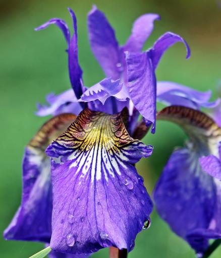 Keywords: iris flower blossom bloom purple flower violet flower nature garden dark purple violet purple botany flora ornamental plant bloom close plant color colorful spring summer rain raindrop drip water wet beaded run off shine drop of water droplets