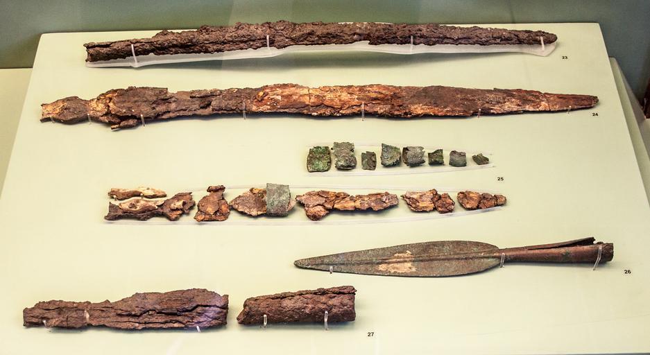 Keywords: Iron and bronze arms from a warrior's urn cremation 900-850 BC.jpg object history Tsissimoiris' plot credit line accession number Photo by Szilas in the Archaeological Museum of Rhodes Commonist Ancient Greek art in the Archaeological Museum of Rhodes 9th-century BC bronzes in Greece |