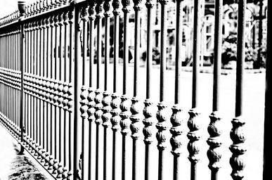 Keywords: iron fence decoration land property boundaries white architecture england background decorated color light effect