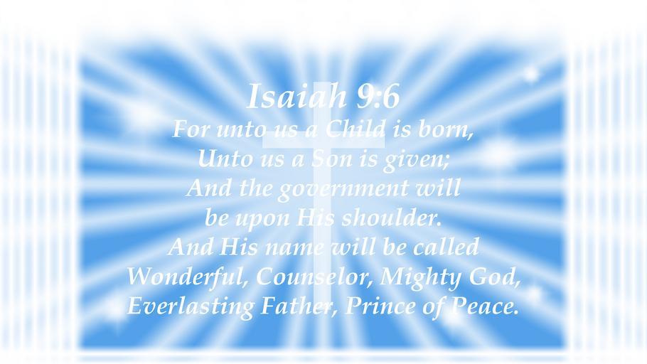 For unto us a Child is born, Unto us a Son is given; And the government will be upon His shoulder. And His name will be called Wonderful, Counselor, Mighty God, Everlasting Father, Prince of Peace.