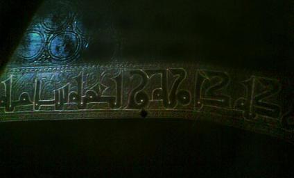 Keywords: Iscrizione Grifo bronzeo Pisa002.jpg Kufic inscription engraved on a bronze Griffin-shaped fountain spout Al-Andalus or Fatimid Egypt Early 11th century Museo dell'Opera del Duomo particolare della banda epigrafica a caratteri cufici incisi sul Grifo bronzeo d'arte islamica Getto di fontana Al-Andalus o Egitto fatimide Inizi XI secolo own Memorato 04 18 2011 Upload date Cc-zero Islamic Griffin Pisa Kufic style Arabic inscriptions in Italy |