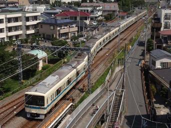 Keywords: Isehara Sta single cross.jpg en Single cross of Isehara Sta Isehara Station Odakyu 8000 series
