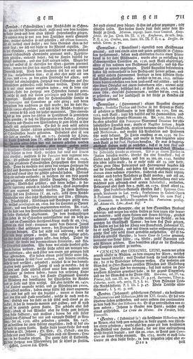 Keywords: Iselin Gmuend.jpg Gmünd aus Neu-vermehrtes Historisch- und Geographisches Allgemeines Lexicon 3 Auflage Bd 3 D-Ha Basel 1742 S 711 scan from original book 1726 author PD-old-100 Books about Schwäbisch Gmünd De Wikisource book leaflet