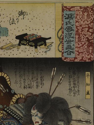 | Keywords: Iseya Ichibei - Genjigumo ukiyo-e awase - Walters 95104 - Detail A.jpg The great 12th-century general Taira no Tomomori ties himself to an anchor so that he may die by his own hand and not from enemy action as defeat nears in the famous sea battle at Dan-no-ura 1185 In The Tale of Genji as her death approaches Lady Murasaki insists on making the arrangements for her own funeral rites 1845-46 late Edo pigments mulberry paper cm 37 7 25 5 accession number 95 104 7131 Justine Lewis Keidel date and mode of acquisition unknown Walters Art Museum Gift of Justine Lewis Keidel 1986 Signature Ichiyusai Kuniyoshi ga; Transcription Genban ise-shi; Translation First published Ise city The Nature of Loyalty Japanese Warrior Prints of the Nineteenth Century The Walters Art Gallery Baltimore 1989 place of origin Edo present-day Tokyo Japan Walters Art Museum license 2D Utagawa Kuniyoshi Japanese prints in the Walters Art Museum Historic samurai prints Media contributed by the Walters Art Museum needs category review |