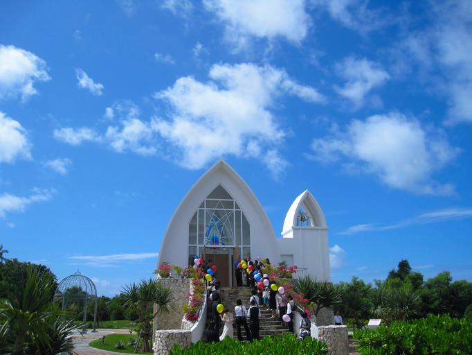 Keywords: ishigaki island church wedding balloons bougainvillea stained glass bouquet blue sky cloud okinawa outlying islands hotel south island japan blue green
