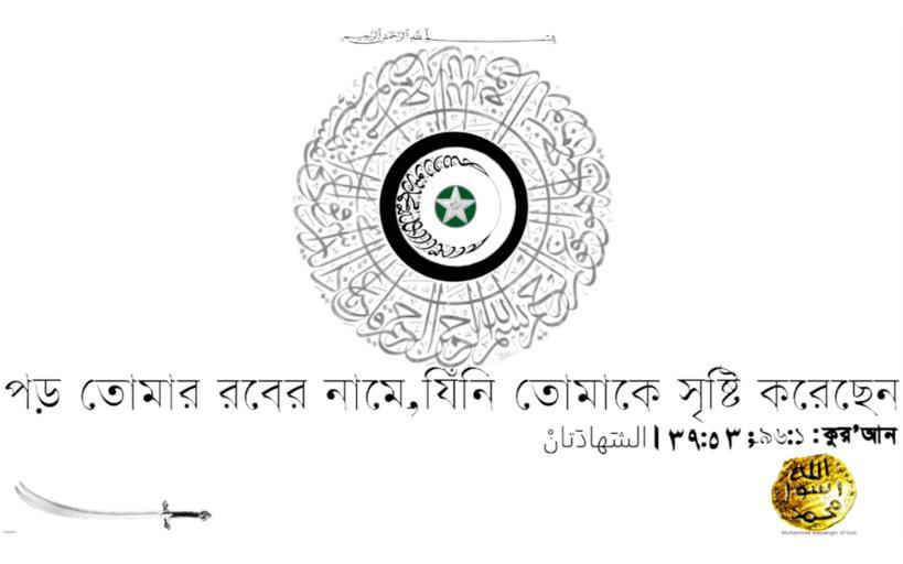 | Keywords: Islamic flag(1280px)(svg)iqrra,logo,icon,islamic quotes,islamic art,islamic picture,islamic image,islamic calligraphy,wallpaper,ইসলামের পতাকা.SVG GFDL-self ইসলামের পতাকা <span class plainlinks ><font color 002bb8 >https //en wikipedia org/wiki/Islamic_flags</font></span>। আরও প্রদর্শন করছে কুরআনের প্রথম অবত র্ণ আয়াতটি । যা শিক্ষা পড়া সমন্ধে আল্লাহ্ র একটি নির্দেশ । Al-Alaq বৈশিষ্ট্য ঃ ক। ইসলামিক ক্যালিগ্রাফি ব্যবহার করে ইসলামের পতাকা তৈর । <span class plainlinks ><font color 002bb8 >https //en wikipedia org/wiki/Islamic_calligraphy</font></span> খ। ক্যালিগ্রাফিটি পা ল / রিডল তৈর করছে । বাইরের বৃত্তাকারটি 39ঃ53; আয়াতকে এবং চাঁদ ও তারাটি শাহাদাহ কে ধারন করছে । <span class plainlinks ><font color 002bb8 >https //en wikipedia org/wiki/Shahada</font></span> গ। শাহাদাহ এঁর বাক অংশ হিসাবে রাসুলুল্লাহ সা এঁর নবুওয়াত এঁর স লমোহর নিচে ডানকোণে প্রদর্শিত হচ্ছে। <span class plainlinks ><font color 002bb8 >https //en wikipedia org/wiki/Seal_of_Muhammad</font></span> ঘ । শিক্ষা পড়া সমন্ধে অনন্য নির্দেশ টি ধারন করছে । আলাক্ব ঙ । মহানব সা এঁর ব্যাবহৃত ; راية السوداء rāyat al-sawdā / rāyat al-`uqāb Black Standard এঁর অনুকরণে কালো বৃত্ত । চ । সৌদি আরব এঁর পতাকার অনুকরণে ুলফিকার তরবারি ; বামে নিচে প্রদর্সিত হচ্ছে । উইকিপিডিয়ায় ব্যবহার ঃ ক। যেহেতু এটি একটি ইসলামের পতাকা । তাই ইসলাম সমন্ধিত যেকোন পোর্টালে হেডার / ব্যানার ইমে হিসাবে এটি ব্যবহার সম্ভব । খ। যেহেতু শিক্ষা পড়া রেফারেন্স সমন্ধে আয়াতটি প্রদর্শন করছে তাই ইসলাম সমন্ধিত যেকোন নিবন্ধেও ইমে হিসাবে এটি ব্যবহার সম্ভব । উইকিপিডিয়া ছবি_ব্যবহারের_ন তি প্রতিষ্ঠিত নিয়ম কপিরাইট এবং লাইসেন্স মেনে চলে এই ইলাস্ট্রেশনটি তৈর ও আপলোড করা হয়েছে । </br> IT'S AN Islamic flag Which also contain Sūrat al-Iqrā إقرا Read Shahada The Seal of Muhammad Islamic calligraphy An Islamic flag is a flag either representing Islam a concept or person related to Islam or a state military force or other entity associated with political Islam The flags of contemporary Islamic states tend to use one or several of the Pan-Arab colours black red white green and sometimes religious inscriptions such as the shahada or the takbir The shahada has also become popular as an inscription on jihadist flags since the 1990s https //en wikipedia org/wiki/Islamic_flags https //en wikipedia org/wiki/Al-Alaq It is sometimes also known as Sūrat al-Iqrā إقرا Read The first five verses of this sura are believed by nearly all sources to be the first verses of the Qur'an to be revealed to the Islamic prophet Muhammad https //en wikipedia org/wiki/Shahada The Shahada is an Islamic creed declaring belief in the oneness of God and the acceptance of Muhammad as God's prophet The declaration in its shortest form reads لا إله إلا الله محمد رسول الله lā ʾilāha ʾillā-llāh muḥammadun rasūlu-llāh There is no god but God Muhammad is the messenger of God https //en wikipedia org/wiki/Seal_of_Muhammad The Seal of Muhammad Turkish Mühr-ü Saadet or Mühr-ü Şerif; Arabic ختم الرسول2 is one of the relics of Muhammad kept in the Topkapı Palace by the Ottoman Sultans as part of the Sacred Relics collection The seal is a rectangular piece of red agate about 1 cm in length inscribed with الله / محمد رسول i e Allah God in the first line and Muḥammad rasūl Muhammad messenger in the second https //en wikipedia org/wiki/Islamic_calligraphy Islamic calligraphy or Arabic calligraphy is the artistic practice of handwriting and calligraphy based upon the Arabic language and alphabet in the lands sharing a common Islamic cultural heritage It is derived from the Persian calligraphy 12 It is known in Arabic as khatt خط which derived from the word 'line' 'design' or 'construction' 3 The development of Islamic calligraphy is strongly tied to the Qur'an; chapters and excerpts from the Qur'an is a common and almost universal text of which Islamic calligraphy is based upon Deep religious association with the Qur'an as well as suspicion of figurative art as idolatrous has led calligraphy to become one of the major forms of artistic expression in Islamic cultures 1 2015-05-26 own masum_মাসুম other versions cc-by-sa-4 0 Uploaded with UploadWizard ইসলামিক আর্ট Islamic art Islamic architecture |