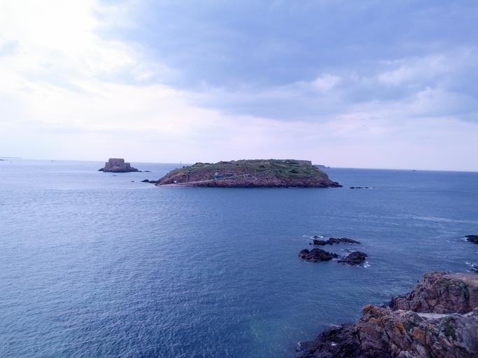 Keywords: island peninsula brittany france high tide blue water sea