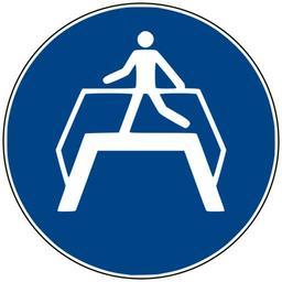 Keywords: ISO 7010 M023.svg de Gebotszeichen M023 à bergang benutzen<br />Technische Regeln für Arbeitsstätten - Sicherheits- und Gesundheitsschutzkennzeichnung en Mandatory action sign M023 Use footbridge ISO 7010 own 2014-11-05 ISO 7010 mandatory action signs ISO 7010 safety signs vector drawings |