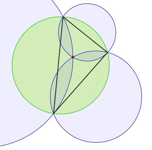 Keywords: Isodynamic-lenses.svg isodynamic point of a triangle is the intersection point of three circles each of which passes through two of the triangle vertices and makes an angle of Ï /3 with the circumcircle own David Eppstein 2012-03-21 Special points in a triangle Files by User David Eppstein from en wikipedia Cc-zero |