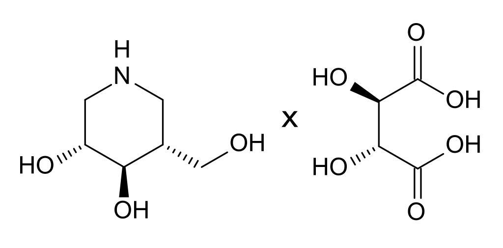 Keywords: Isofagomine tartrate structure.svg isofagomine tartrate Own Anypodetos 2009-06-24 BKchem 001 -check Alcohols Amino sugars Orphan drugs