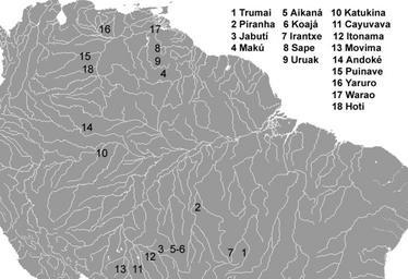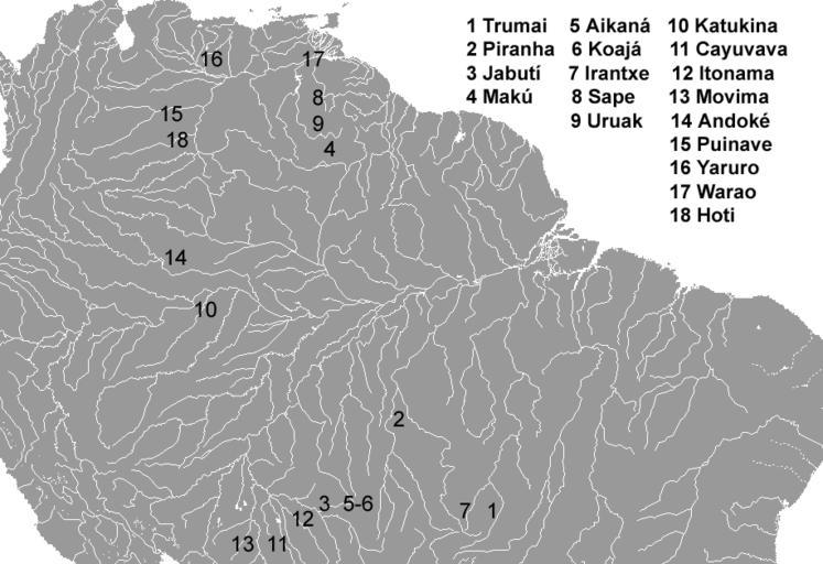 Keywords: Isolates of Amazonia.png en Language Isolates of Brazil Boliva Colombia and Venezuela Based on data in The Amazonian Languages Dixon Alexandra Y Aikhenvald eds Cambridge Cambridge University Press 1999 p 342 Own Davius 2009-05 Language isolates |