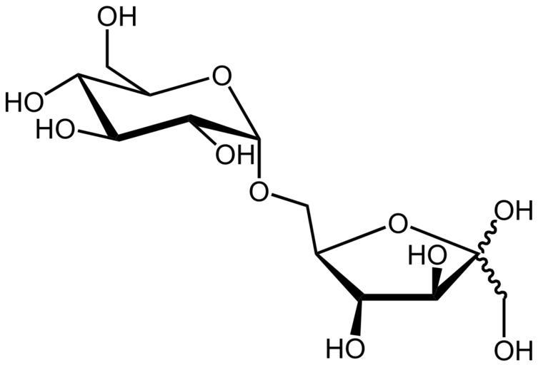 Keywords: Isomaltulose structure.svg C - Structure of 6-O-a-D-glucopyranosyl-fructose ; Palatinose ; Isomaltulose Own work by ChemDraw 2007-04-22 Su-no-G Isomaltulose