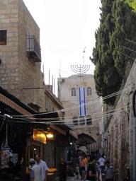 Keywords: Israel Batch 1 (868).JPG Jerusalem Old City of Jerusalem Israel - Looking northwest from near Station of the Cross IV up El Wad street in the Muslim Quarter of the Old City of Jerusalem The building furthest away is a house owned by former Israeli Prime Minister Ariel Sharon Vieille ville de Jérusalem - Quartier musulman - le souk rue Al-Wad en direction de la porte de Damas - Tout au fond la maison de Sharon avec la grande menorah sur le toit chevauche la rue El-Wad Habituellement un grand drapeau israélien est déroulé sur toute la hauteur de la façade own 2011-07-29 18 08 15 User Mattes <gallery> File Israel Batch 1 868 JPG File Austrian Hostel IMG 9641 JPG File Israel market jpg File El Wad Muslim Quarter Jerusalem from near Station of the Cross IV jpg </gallery> 31 7799566667 35 231895 info GPS data may be inaccurate EXIF data regarding date and time may be inaccurate Commonist FoP-Israel Old City Jerusalem Taken with Sony DSC-HX5VN Work by Mattes 2011 User Mattes/Contributions/Topics/Israel Buildings with flags in Israel User Mattes/Contributions/Topics/banners coat of arms flags logos seals and signs User Mattes/Contributions/Topics/Buildings and structures Menorah in art Haguy street Beit Wittenberg Ariel Sharon's house Jerusalem |