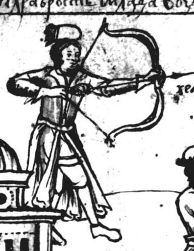 | Keywords: IstSib002 1.jpg Е мак х аб ости и ст ельбе учитца в цель Исто ия Сиби ская ультимедиа Цент ГУ http //www mmedia nsu ru/vbook/vbook/obj8/MINIATURES htm 1697 - 1703 С У Ремезов Author died more than 70 years ago - public domain PD-old Remezov Chronicle |