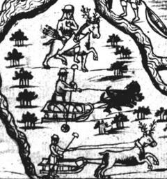 | Keywords: IstSib005 3.jpg Сиби ские на оды остяки и самоядь ездят на оленях и псах Исто ия Сиби ская ультимедиа Цент ГУ http //www mmedia nsu ru/vbook/vbook/obj8/MINIATURES htm 1697 - 1703 С У Ремезов Author died more than 70 years ago - public domain PD-old Remezov Chronicle |