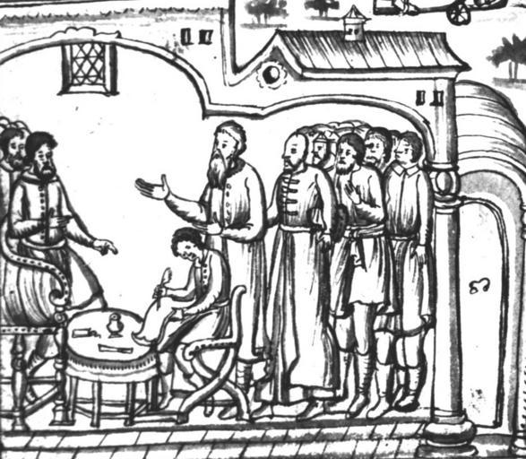 | Keywords: IstSib067 1.jpg Е мак диктует послание о победе над Кучумом ца ю Ивану Васильевичу Исто ия Сиби ская ультимедиа Цент ГУ http //www mmedia nsu ru/vbook/vbook/obj8/MINIATURES htm 1697 - 1703 С У Ремезов Author died more than 70 years ago - public domain PD-old Remezov Chronicle |