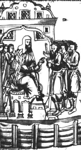 | Keywords: IstSib091 1.jpg Пе вый сиби ский а хиепископ Кип иан ассп ашивает усских и тата о Е маке и его казаках Исто ия Сиби ская ультимедиа Цент ГУ http //www mmedia nsu ru/vbook/vbook/obj8/MINIATURES htm 1697 - 1703 С У Ремезов Author died more than 70 years ago - public domain PD-old Remezov Chronicle |