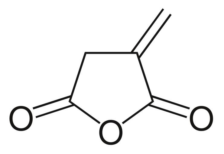 Keywords: ItaconicAnhydride.svg en structure of itaconic anhydride Own Choij 2009-08-16 Carboxylic anhydrides Alkene derivatives Five-membered oxygen heterocycles