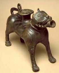 | Keywords: Italian - Handwasher (Aquamanile) in the Form of a Cheetah - Walters 542434 - Three Quarter.jpg conj or Italy This fearsome-looking cheetah is one of a small group of Islamic animal bronzes made for use as incense burners pouring vessels called aquamaniles and fountain fixtures Trained cheetahs were favorite hunting animals in the Islamic world especially at royal courts This taste was emulated by the Christian kings of Sicily who featured felines in the decoration of their palaces Objects like this aquamanile also inspired artists in Germany and other parts of northern Europe beginning in the 13th century century 11 13 Medieval cast and chiselled bronze cm 19 4 22 3 9 6 accession number 54 2434 28727 Julius Carlebach Gallery New York date of acquisition unknown by purchase Walters Art Museum 1958 by purchase Museum purchase 1958 Russian Art Icons and Decorative Arts from the Origin to the Twentieth Century The Walters Art Gallery Baltimore 1959-1960 The Meeting of Two Worlds The Crusades and the Mediterranean Context The University of Michigan Museum of Art Ann Arbor 1981 The Allure of Bronze The Walters Art Gallery Baltimore 1995 place of origin Egypt Walters Art Museum license Islamic metalwork in the Walters Art Museum Italian art in the Walters Art Museum Media contributed by the Walters Art Museum needs category review Aquamanile Metalwork of Egypt Julius Carlebach 11th-century sculptures |