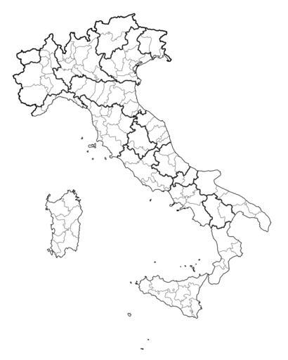 Keywords: Italian regions white.svg en Schematic map of the italian regions and provinces it Mappa delle regioni e province italiane own Gigillo83 2009-10-10 <gallery> File Italian_regions_provinces svg File Italian regions provinces white no labels svg File Italian provinces no regions svg </gallery> SVG locator maps of regions in Italy green transparency map scheme Maps of provinces of Italy Blank maps of Italy |