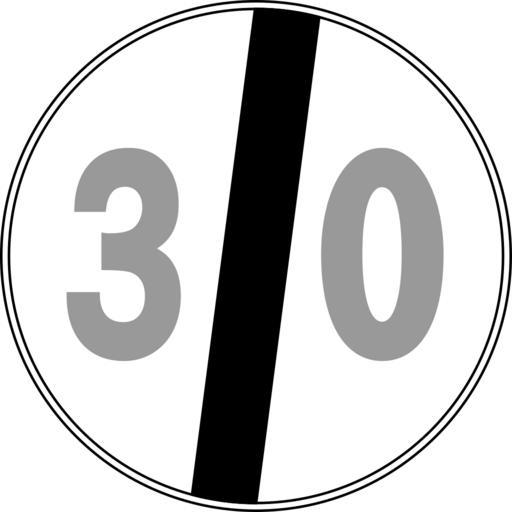 View Original: | Italian traffic signs - fine limite di velocità 30.svg (200x200) | |||