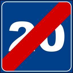 Keywords: Italian traffic signs - fine velocità consigliata 20.svg fine velocità consigliata 20 km/h end of suggested speed 20 km/h Own 7/11/2006 F l a n k e r Diagrams of indication signs useful for driving of Italy Advisory speed limit road signs 20 number |