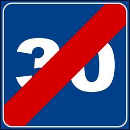Keywords: Italian traffic signs - fine velocità consigliata 30.svg fine velocità consigliata 30 km/h end of suggested speed 30 km/h Own 7/11/2006 F l a n k e r Diagrams of indication signs useful for driving of Italy Advisory speed limit road signs