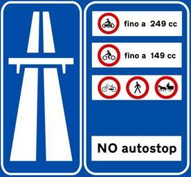 | Keywords: Italian traffic signs - Inizio strada extraurbana principale.svg Sign of beginning speedway in Italy Kiirtee alguse liiklusmärk Itaalias segnale di preavviso di inizio strada extraurbana principale Own 2010-06-23 Gigillo83 Diagrams of indication signs useful for driving of Italy Prohibitory road signs Controlled-access highway signs Italian language signs Blue signs Rectangular road signs | ||||